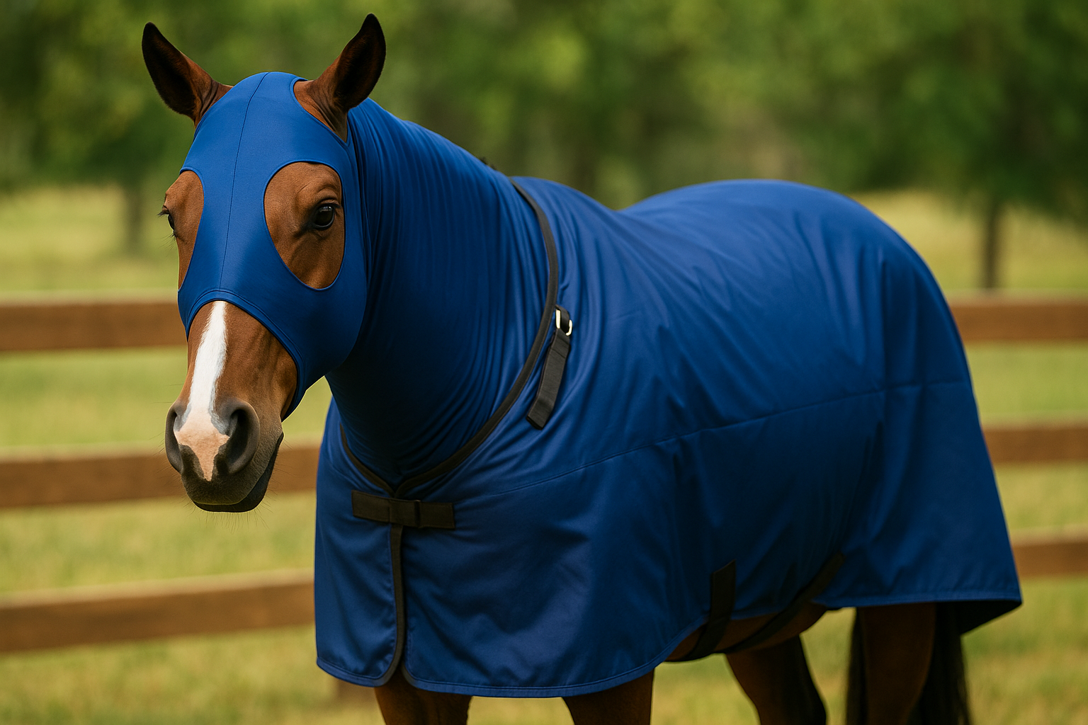 Die Materialien lassen Luft zirkulieren, leiten Feuchtigkeit ab und schützen gleichzeitig das frisch geputzte Fell – perfekt für Showpferde, die glänzend in die Arena starten sollen.